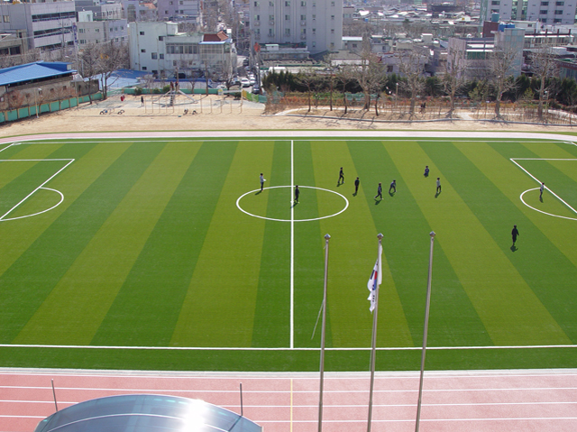· 천연잔디와 비슷한 모양으로 공사기간이 짧으며 관리가 용이하다.